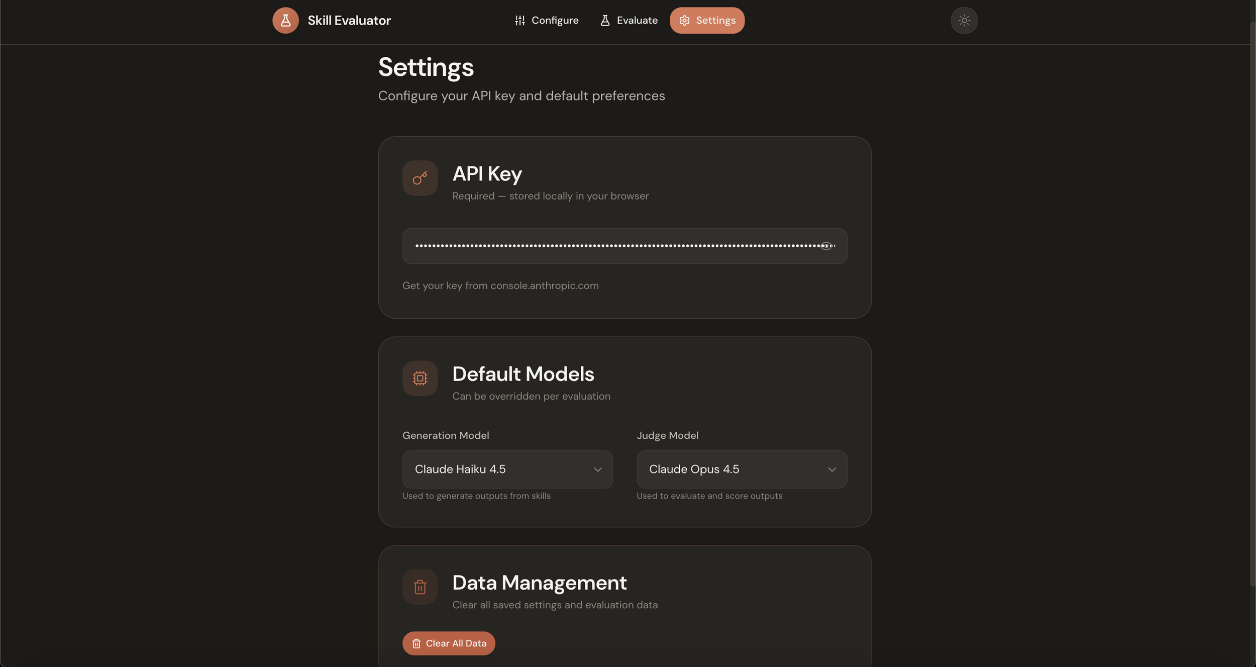 The repo is at github.com/justinwetch/SkillEval. Clone it, run npm install and npm run dev, add your API key in settings, and you're ready to go. The README has detailed setup instructions and example skill files to play with!